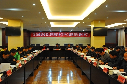 12月23日,文山州紀委理論學習中心組舉行2014年度第四次集中學習。專題學習黨的十八屆四中全會和十八屆中央紀委四次全會精神。文山州委常委、州紀委書記張杰主持學習并講話。