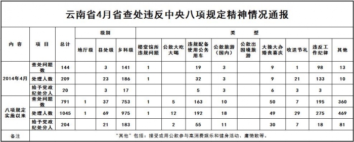 云南省4月查處違反中央八項規(guī)定精神情況通報