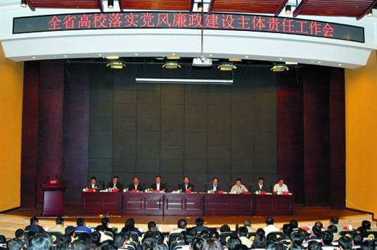 省委常委、省紀(jì)委書記辛維光出席會議并講話,省委常委、省委高校工委書記李培主持會議,中央紀(jì)委、監(jiān)察部駐教育部紀(jì)檢組監(jiān)察局副局級監(jiān)察專員姚發(fā)明出席會議并講話。
