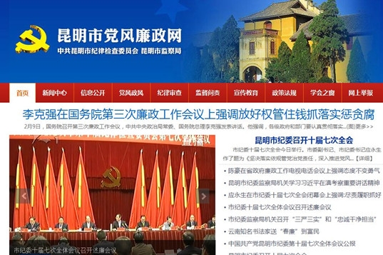 2月10日,昆明市紀委監察局官方網站“昆明市黨風廉政網”全新改版升級正式與公眾見面。今后,市民只要登錄該網站,就可以了解昆明乃至全國黨風廉政建設和反腐敗工作的動態情況,還可直接在網上進行舉報。