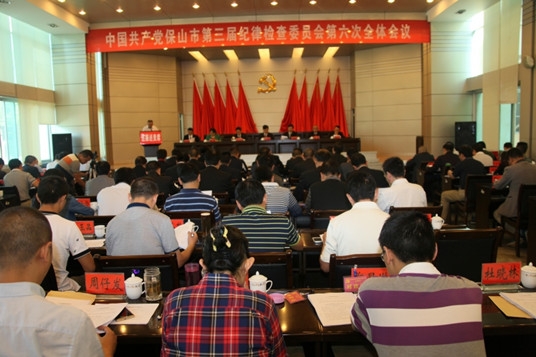 9月22日,保山市召開市紀委三屆六次全會,專題聽取12名市管黨政領導班子主要負責人報告落實黨風廉政建設主體責任和個人廉潔自律情況。應到會市紀委委員33人,因事因病請假2人,實到會31人。市紀委常委會主持會議。