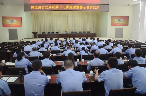 為強(qiáng)化教育,進(jìn)一步提升民警的防腐拒變能力,打造忠誠(chéng)、干凈、擔(dān)當(dāng)?shù)墓碴?duì)伍。4月9日,怒江州公安局黨委委員、紀(jì)委書記周學(xué)良同志為全局黨員民警上了題為《深刻認(rèn)識(shí)反腐敗斗爭(zhēng)新形勢(shì),以五個(gè)強(qiáng)化提高廉潔從政能力》的廉政黨課專題講座。