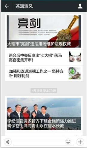 為進一步加大黨風廉政建設和反腐敗工作的對外宣傳力度,大理市紀委監察局積極創新方式,搭建對外宣傳新平臺。近日,開通了官方微信平臺“蒼洱清風”。微信平臺以干部的“防腐劑”、群眾的“清心丸”為定位,設有“廉政動態、警鐘長鳴、清風文苑”等欄目,由大理市紀委監察局管理和維護。