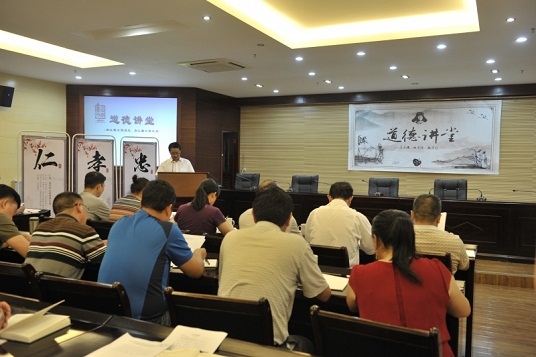 此次道德講堂共分唱一首歌曲、看一部短片、誦一段經典、講一個故事、作一番分享五個環節。