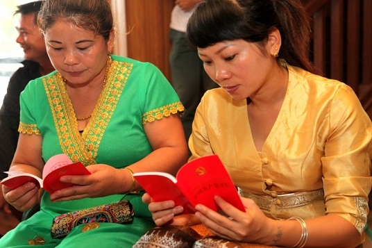 7月13日,西雙版納傣族自治州景洪市嘎灑鎮(zhèn)曼景罕村民小組洋溢著喜慶的氣氛,西雙版納編譯的《中國(guó)共產(chǎn)黨章程》傣文版發(fā)放儀式在這里舉行,12000余本傣文版的黨章將全部發(fā)到每一個(gè)傣族黨員的手中。