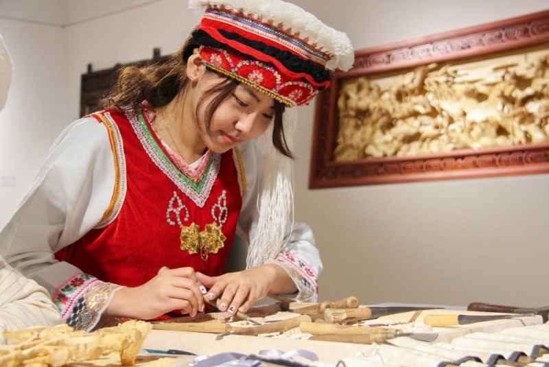 “雕得金龍騰空舞,刻出雄雞報(bào)五更,鑿出百鳥枝頭唱,鏤花引蜜蜂。”一首傳統(tǒng)白曲道出了劍川木雕的精湛技藝。劍川木雕已有五千多年的歷史,劍川被譽(yù)為“中國木雕藝術(shù)之鄉(xiāng)”,劍川木雕技藝也被列入國家級非物質(zhì)文化遺產(chǎn)保護(hù)名錄。
