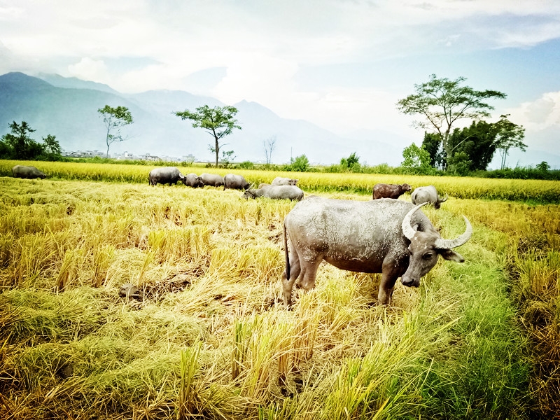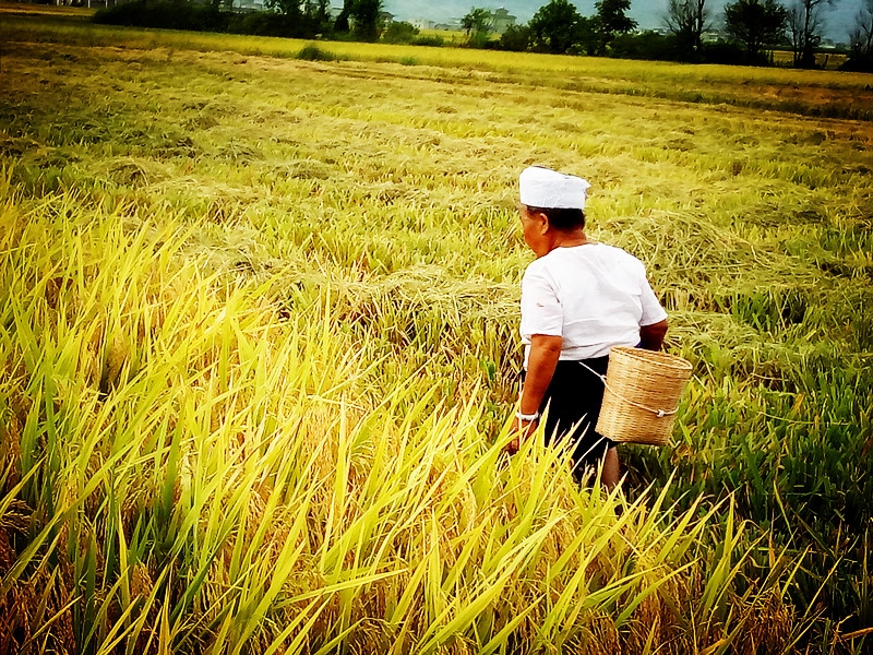 稻子黃了,大地沸騰了。農(nóng)民拿著鐮刀,背著籮筐,在田間來回穿梭。收割機(jī)的轟隆隆聲響徹耳際,就連牛兒們也不閑著,在田間地頭啃著青草,欣欣向榮的一派熱鬧景象已表明今年又是一個豐收年。