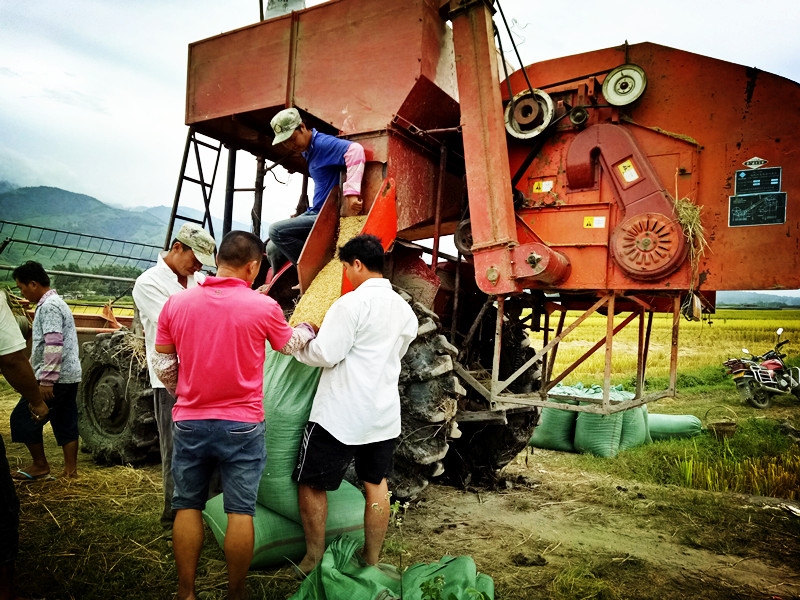 盞西鎮(zhèn)位于盈江縣東北部,是盈江縣第二大農(nóng)業(yè)鎮(zhèn),也是重要的優(yōu)質(zhì)稻良種繁育基地。今年風(fēng)調(diào)雨順,氣候適宜,水稻長勢普遍好于往年。稻谷熟了,2萬畝的田野上到處起伏著金黃的麥浪,彌漫著淳樸的麥香,又到了一年一度的豐收時。