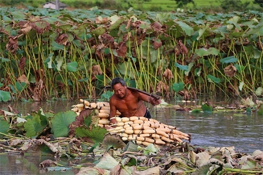 采藕的畫面沒有《舌尖上的中國》里那么多的詩情畫意,更多讓人感受到的是采藕人的艱辛