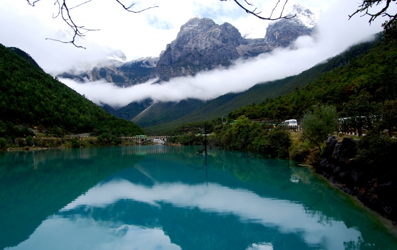 披在玉龍雪山上的云像紗一樣的夢(mèng)幻