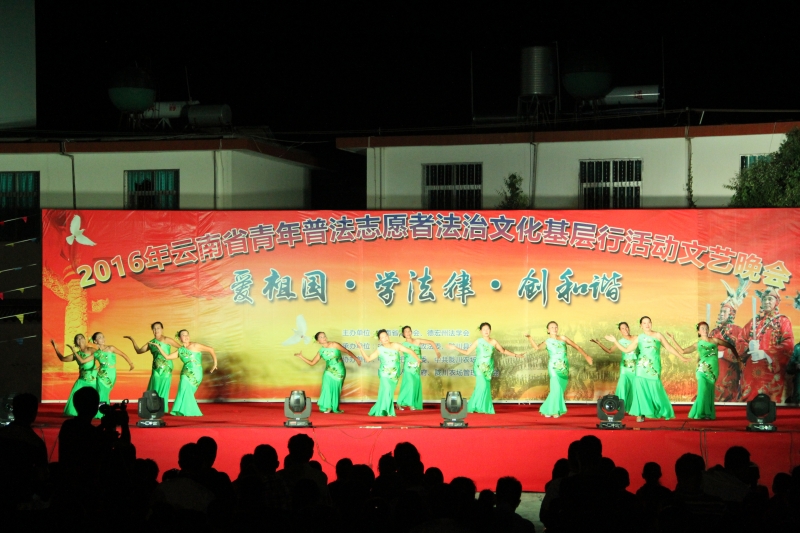 縣政法系統舉辦“愛祖國、學法律、創和諧”為主題的國慶晚會,少數民族群眾載歌載舞、歡聚一堂。
