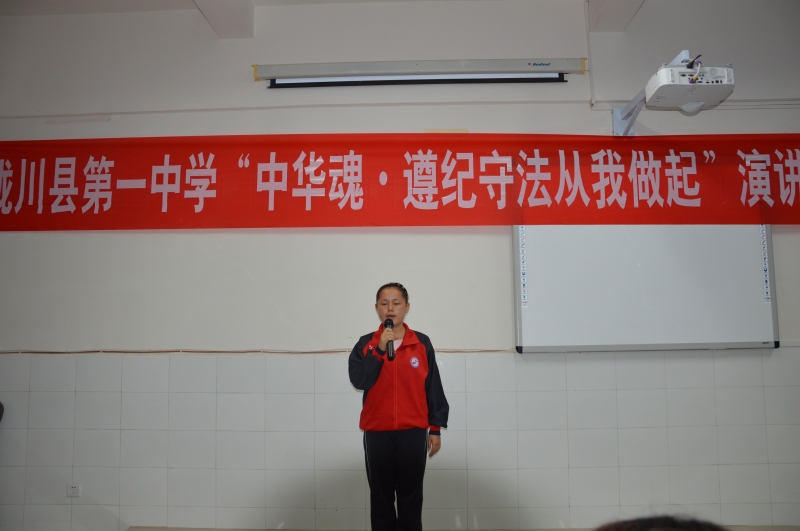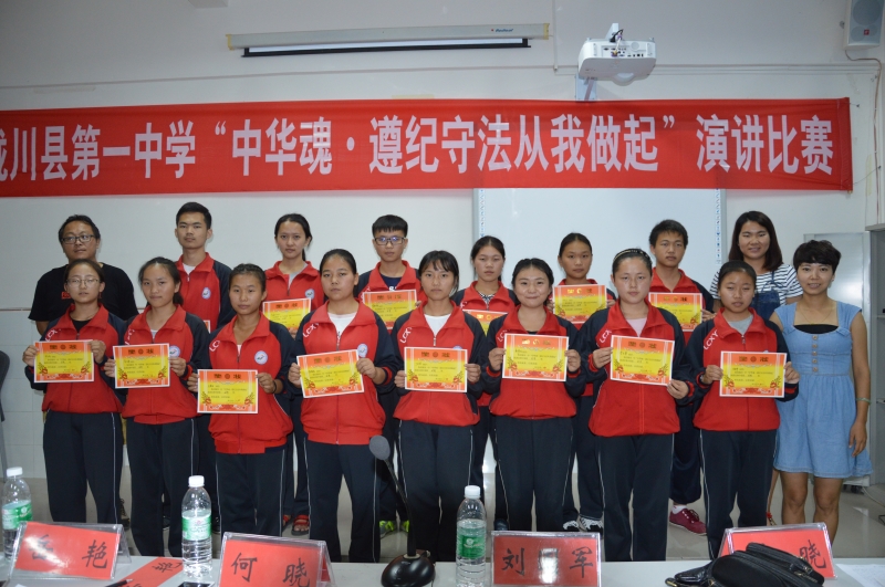 縣一中組織“中華魂?遵紀守法從我做起”演講比賽。讓學生從小樹立愛國意識、養成自覺遵紀守法的習慣。