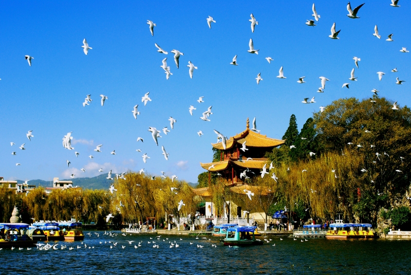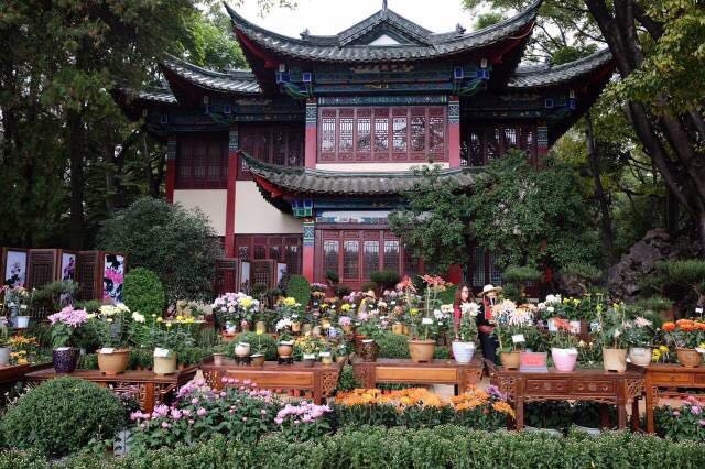 每年國慶節大觀樓金秋菊花展,有500多個品種的菊花供游客、市民觀賞。
