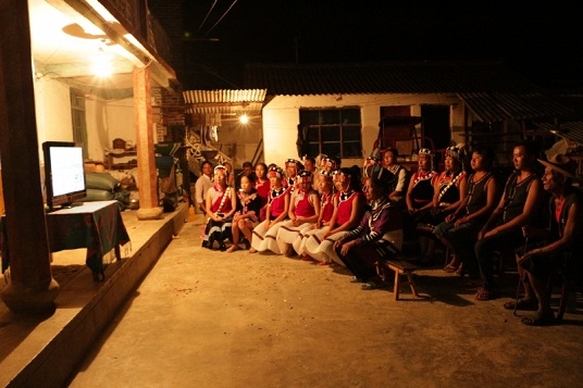 施甸縣木老元鄉(xiāng)布朗族群眾觀看專題片