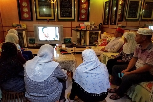施甸縣由旺鎮(zhèn)回族一家觀看專題片
