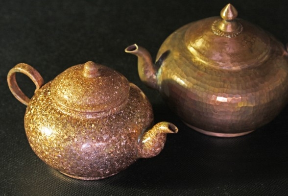 用“千錘百煉”來形容會澤斑銅,再合適不過了。斑銅工藝品“妙在有斑,貴在渾厚”,其制作采用會澤特有的天然銅,采用高溫熔融制斑、整形、煮斑、露斑、拋光等20余道工序,煅燒幾十次,敲打幾萬錘方能定型,一件斑銅器物要歷時兩個月多才能完成。用這種方法做出的香爐、花瓶、筆筒等工藝品,在橘紅色的基面上,均勻地布滿了黃白交燦的晶斑,晶斑具有折光性、富有立體感,宛若若干細小的水晶石鑲嵌在表面,看似凹凸不平實則光滑如玉。整體來看,錚亮璀璨、金赤交輝、晶瑩閃爍、光彩照人,富麗而不失凝重,古樸而不失典雅。]被鑒賞家譽為“金屬寶石”。