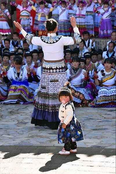 小水井人為什么如此愛唱歌,如此會唱歌?這就是中華民族文化的“傳承”,400多人的苗族山寨,有兩個合唱團。小孩子先跟著老人學,優秀的被選拔參加青年組,就是參加外出表演的“富民小水井苗族農民合唱團”;年長的參加中老年合唱團,不為別的,就是愛好。小水井人對音樂有獨到的理解,在合唱中懂得圓融、知道“退讓”,達到完美的生態平衡。