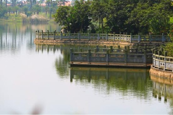 環(huán)湖一圈約3公里,沿岸圍滿雕刻著各種花紋的石欄,其間各種奇樹稀草、嶙峋異石星落,曲徑通幽處,入眼景不同,廻轉(zhuǎn)之間,各有雅致