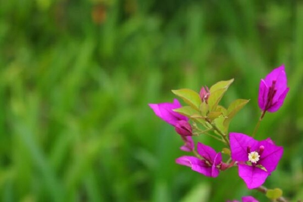 玫粉色的三角梅露出嫩黃的花蕊,這滿眼的綠中點(diǎn)綴著紅,剛剛好