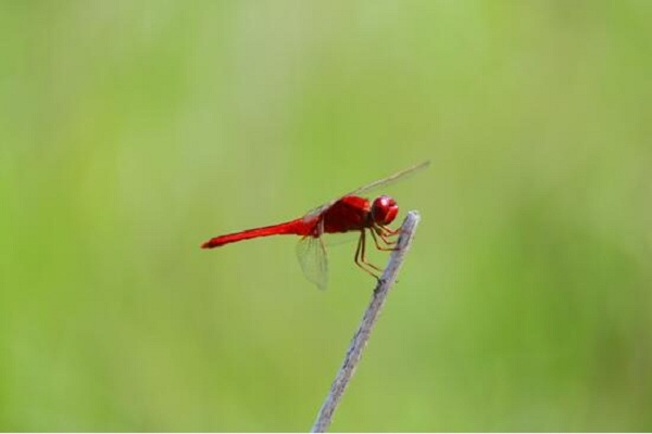 因?yàn)榕R近湖畔,時(shí)常能在枯萎的枝干上找尋到停歇小憩的紅蜻蜓