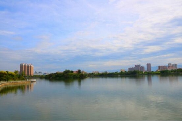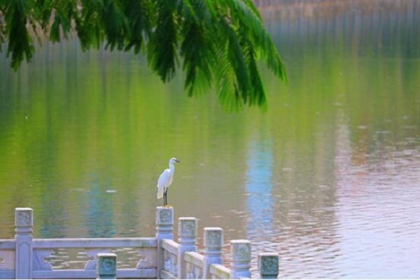 遠(yuǎn)處的高樓靜靜地倒映在微波蕩漾的湖面,市區(qū)的車馬喧囂、人聲鼎沸瞬間消失,宛如世外秘境