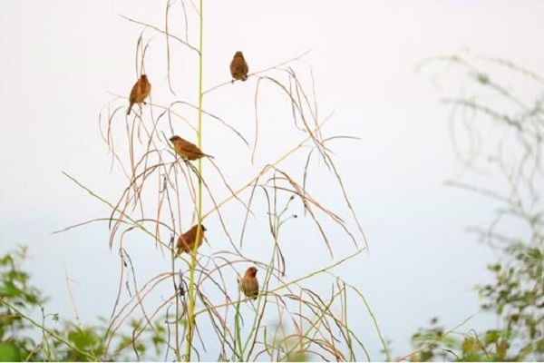 麻雀成為公園的長(zhǎng)住客,它們偶爾在草叢間覓食,偶爾化作樹梢上的音符,活潑動(dòng)人