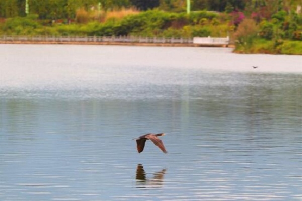 弄莫湖濕地公園草豐、林密、水好、魚肥,免不了要吸引各種鳥兒來此筑巢生息。湖心有一個(gè)面積約5畝的小島,四周環(huán)水、樹木陰翳,游客不能登島,這里便成為了鳥兒的天堂。