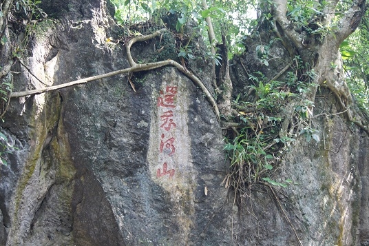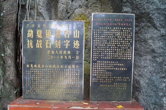 楊思敬于1942年秋在芒市勐戛鎮(zhèn)蓮臺山觀音寺旁題寫四個大字“還我河山”,并請勐戛鎮(zhèn)芒往村石匠朱發(fā)行雕刻在山壁的巖石上。