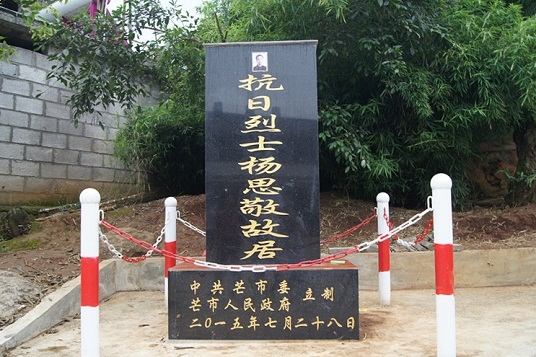 2015年7月28日,芒市委、芒市人民政府在勐戛大新寨為楊思敬豎了一塊紀(jì)念碑,碑文為“抗日烈士楊思敬故居”,以示永久的懷念。