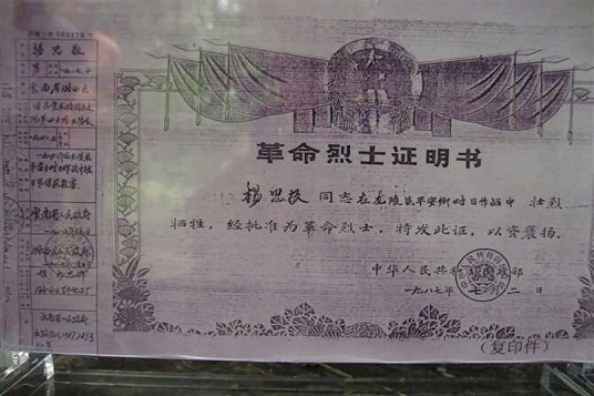 1987年12月,經(jīng)中華人民共和國民政部批準(zhǔn)為革命烈士