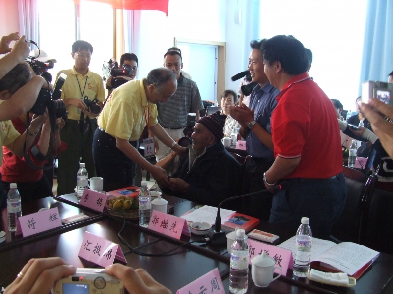 2006年8月8日羅瑞卿大將之子羅箭慰問李鎮老人(中共富民縣委黨史研究室提供)