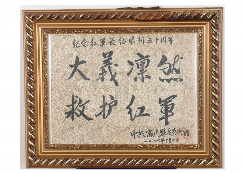 1986年10月20日中共富民縣委贈李鎮“大義凜然,救護紅軍”匾