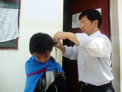 熊朝貴幫學生理發