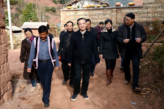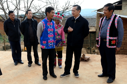 新春佳節(jié)即將來臨之際,20日至21日,省委常委、省紀委書記張碩輔來到楚雄彝族自治州“掛包幫”“轉(zhuǎn)走訪”扶貧聯(lián)系點楚雄市子午鎮(zhèn)挖銅村委會,指導(dǎo)當?shù)孛撠毠怨ぷ鞑⒆咴L慰問貧困群眾,向他們送去黨和政府的溫暖。