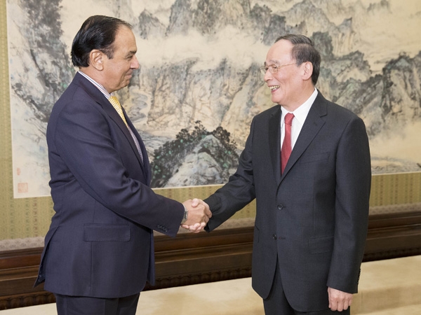 中共中央政治局常委、中央紀委書記王岐山11月9日在中南海紫光閣會見巴基斯坦國家問責局局長喬杜里。