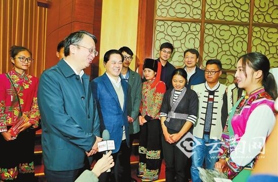 11日上午,沈春耀在報告會后與云南民族大學同學進行交流。記者 周燦 攝