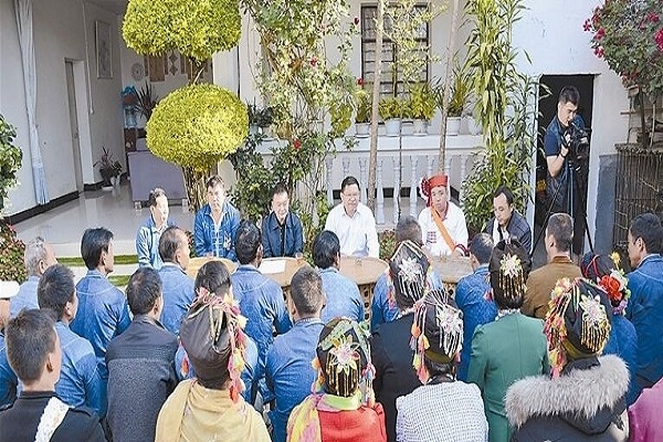 近日,由省委宣講團(tuán)成員、省直機(jī)關(guān)工委常務(wù)副書記溫劍帶隊(duì)的省委宣講團(tuán)一行,深入芒市風(fēng)平鎮(zhèn)龍昌移民村,向各族群眾宣講黨的十八屆六中全會(huì)精神,與大家交流心聲,共話未來發(fā)展。