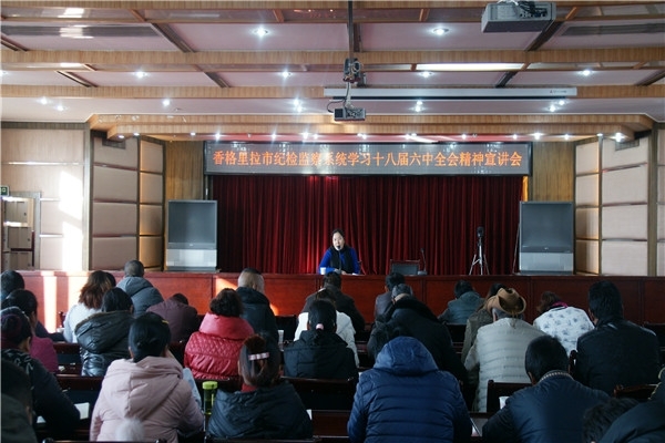 11月30日上午,迪慶州委宣講團(tuán)深入香格里拉市為全市紀(jì)檢監(jiān)察干部學(xué)習(xí)貫徹十八屆六中全會(huì)精神進(jìn)行宣講。香格里拉市直及省屬駐市各單位紀(jì)委書記、紀(jì)檢組長,市紀(jì)委監(jiān)察局全體干部職工56人參加了宣講會(huì)議。