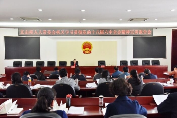 近日,文山州人大常委會(huì)機(jī)關(guān)舉行學(xué)習(xí)貫徹十八屆六中全會(huì)精神宣講報(bào)告會(huì),州委宣講團(tuán)成員、州紀(jì)委副書記到會(huì)作宣講報(bào)告。