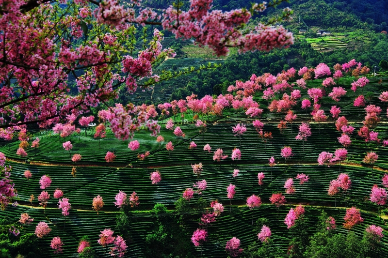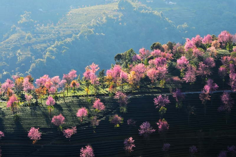 每年11月底至12月初,神州大地進(jìn)入寒冬季節(jié),無量山櫻花卻競相盛開,穿梭在櫻花和茶園中,猶如來到人間仙境,讓人如癡如醉。