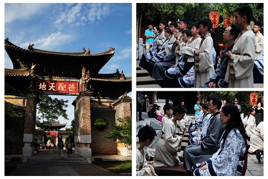 在《崇圣禮樂》古樂演奏中,“慎獨修身,正心誠意”、“其身正,不令而行,其身不正,雖令不從”等思想,伴著古樸凝重的唱詞,余音繞梁,傳承至今。(紅河州紀委 尹崎)