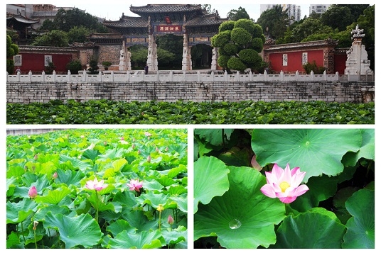 文廟泮池中,出污泥而不染的蓮花朵朵綻放。