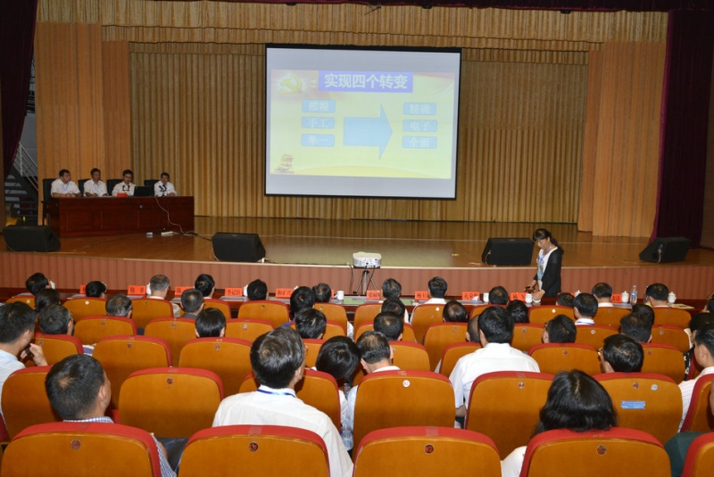 全體人員在通海縣委會堂報告廳聽取華寧縣“互聯(lián)網(wǎng)+黨風廉政建設責任制考核平臺”建設及運用情況演示介紹