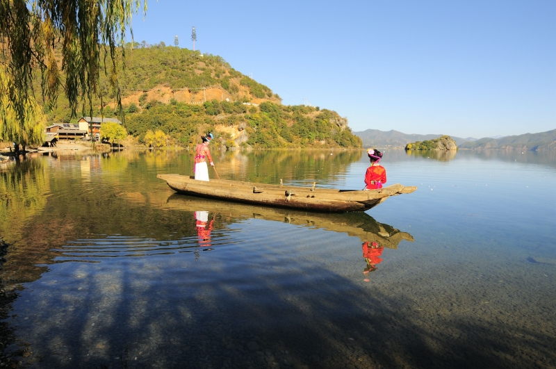 瀘沽湖將自然景觀和人文景觀融為一體,尤其是以摩梭人獨特的文化和民族風俗使其具有獨特而豐富的內涵。瀘沽湖畔居住的納西族摩梭人,婚姻獨特,風俗獨特,家家之主,皆為女性,其家庭成員血緣,均為母系血統。