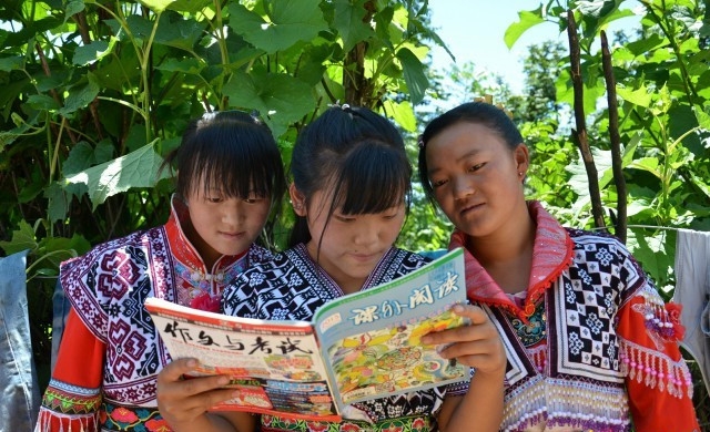 “小朋友們,快過來看課外書,這些書都是送給你們的。”大關縣圖書館館長常紹慧招呼著孩子們。看著這些浸滿汗水的書籍,身著苗族服飾的孩子們便尋找著自己喜愛的圖書,三五成群、專注地閱讀起來,看到動情處不時吆喝一下旁邊的伙伴,那高興勁兒已經寫在了他們掛滿笑容的臉上。工作隊員們不時引導孩子們學習,其樂融融的場景在此地成了難得一見的“風景”。