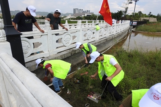 2016年8月8日,文山州紀委監察局15名志愿者參加了文山市臥龍街道大以古社區組織開展的華龍湖環湖區域環境衛生清理活動。