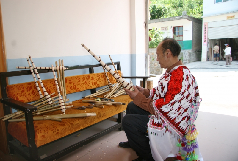 蘆笙以苦竹、樺槁樹皮、杉木、銅片為料,使用刀、鋸、刨、鑿、鉆、錘、剪刀、煉爐等工具制作而成