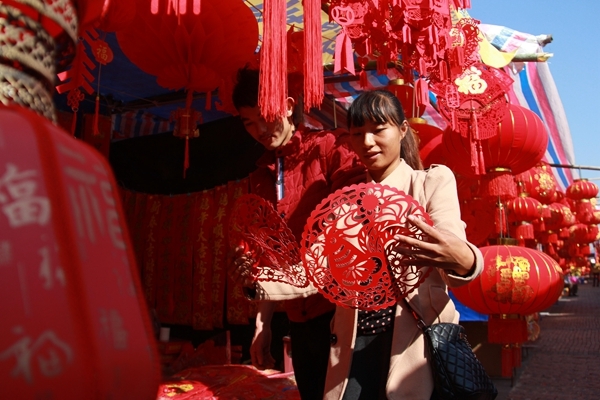無論城市還是農村,家家戶戶都要挑選一副大紅春聯貼于門上,增加節日的喜慶氣氛