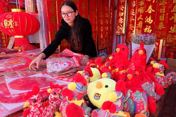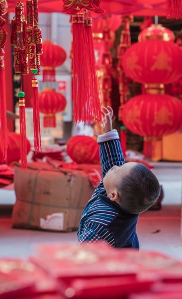 年貨街張燈結彩,頑童也想抓住雞年的好運