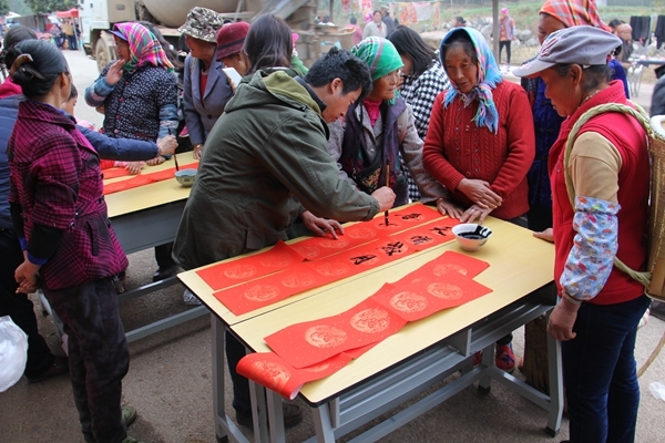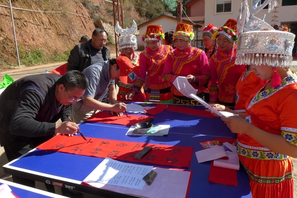 東川區書法愛好者到烏龍鎮為群眾書寫“好家規、好家風”春聯(昆明市東川區烏龍鎮紀委)